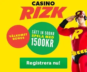 Rizk Casino – Sätt in 500 kr få 1500 kr att spela för + 50 omsättningsfria fere spins.